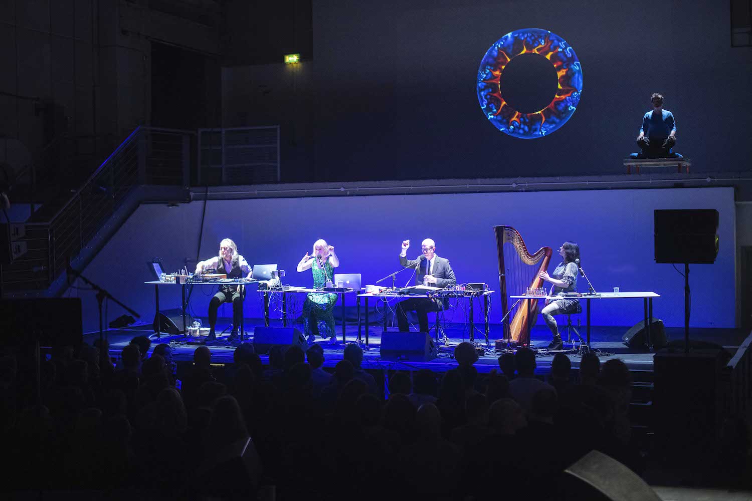 The UK premiere production of Jennifer Walshe’s TIME TIME TIME at LCMF 2019. Image: Dawid LaskowskiTimothy Morton and Jennifer Walshe join forces to explore the multiplicity of temporalities at the heart of being human in this new opera presented in collaboration with the Serpentine Galleries. Everyone in the room is important – the fast-paced digital time of M.C. Schmidt and Walshe, the deep geological rhythms of Lee Patterson, the liminal eternal drones of Áine O’Dwyer. The shifting tectonic plates of Streifenjunko and Vilde&Inga. The audience, whose entropy demonstrates that time is indeed passing.